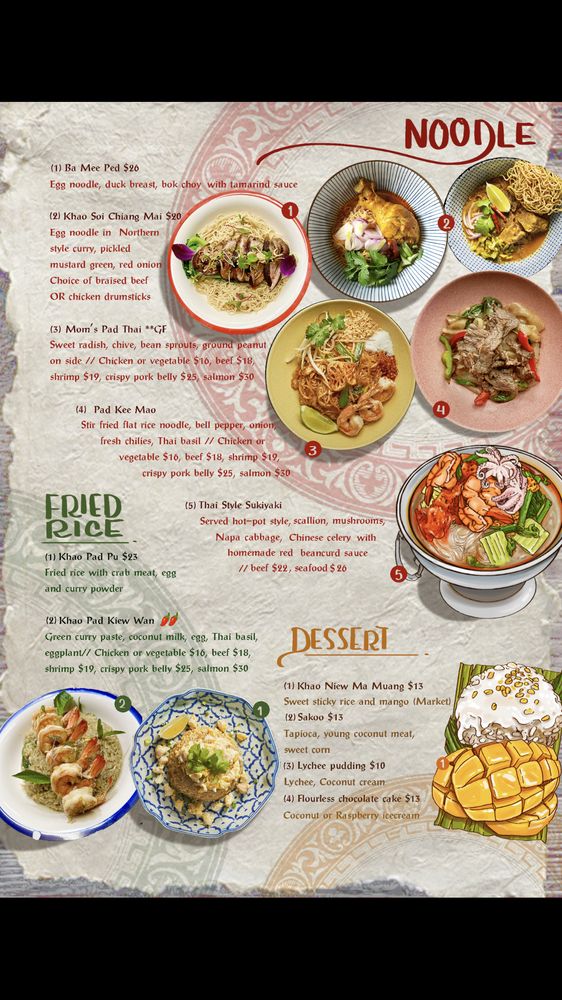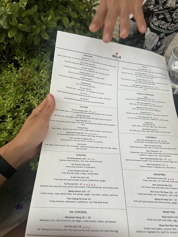 Introducing the menu at Valla Table, a cozy Thai restaurant in New York City offering a variety of vegan and vegetarian options alongside classic dishes like Pad Thai and spicy beef noodles. Customers praise the dimly lit ambiance, quick service, and outstanding cocktails. The intimate setting makes it perfect for a casual date or a friends' get-together. Standout dishes include the fried pork jowl, tum yum soup, and beef brisket panang. The staff is attentive and accommodating to dietary preferences, making it a great choice for groups with varied diets. With a focus on flavorful dishes and creative cocktails, Valla Table is a must-visit Asian-owned establishment in Hell's Kitchen. Make sure to reserve a table in advance to experience the high-quality food and upscale vibe that this restaurant offers.